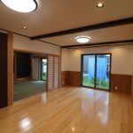 18帖の広いリビングも、床の間のある和室も、天然木に囲まれて落ち着く空間に。